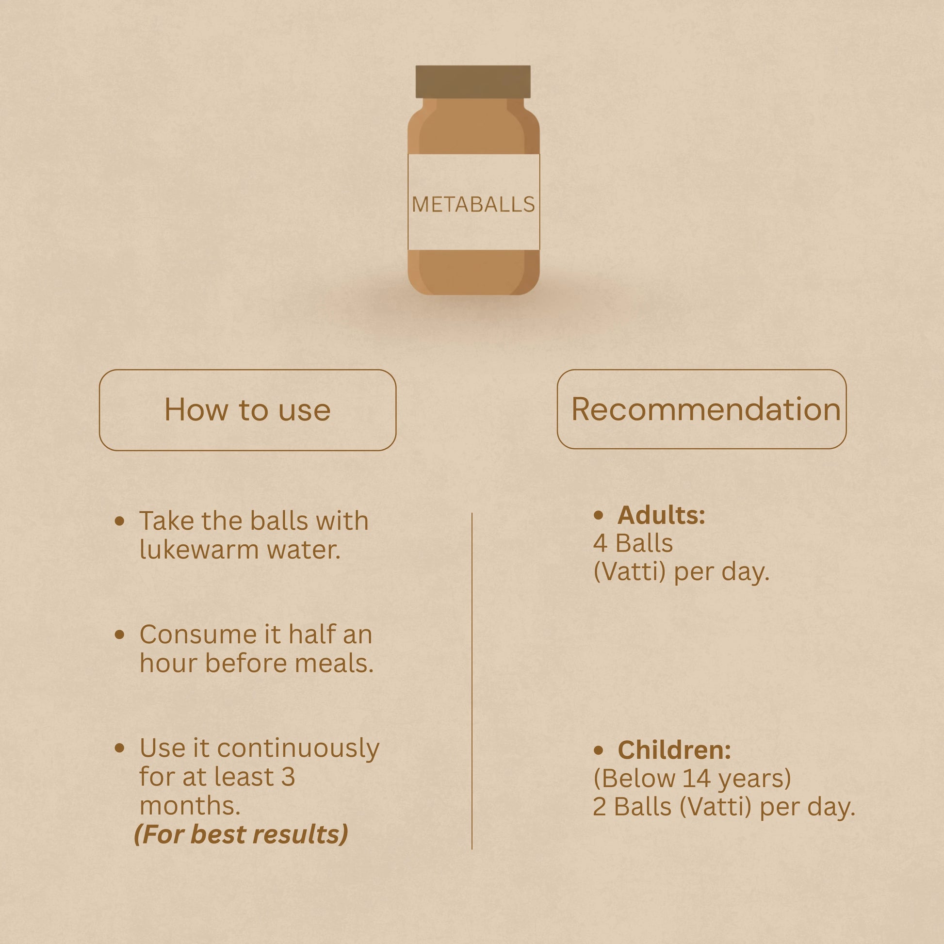 Take your Metaballs with this lukewarm water — 30 minutes before Meal for best results.